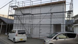 外部が ある程度完成するまではシートでグルグルミイラ状態です。