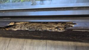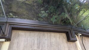 今回のミッションは店舗の幅木修繕です。原因は数年前の白蟻被害と結露による腐食のようです、検査結果 幸い白蟻はいませんでしたが腐食が進み表面はベコべコでした。問題は店舗用のオシャレデザイン巾木という事で