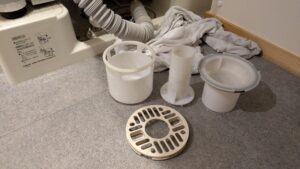 今回のミッションは洗濯パンの排水詰り清掃です。洗濯槽クリーナーですが、すごくキレイになる=すごい浴槽ヌメリが出ます。定期的にされるとよいのですが、期間を空けすぎるときは注意です!ホースを見ればわかりま