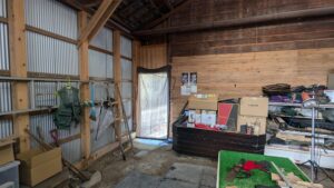 少し難しい話ですが、昔の建物なので間(尺)が広い!壁の寝起きや土間の水平など(汗)やりがいがあります。壁も波トタンだけなので冬は外気温と同じ、隙間から虫も入ってきます。逆に夏は涼しいのではと伺うと、か